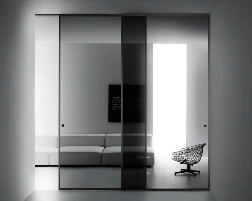 Interior sliding glass doors can be satin-finished or transparent. Decorations can be made using decals or sandblasting. The usual choice is minimalist decorations, light and delicate embellishments, although there is nothing to stop you choosing more elaborate decorations and creating a kind of personalised work of art.